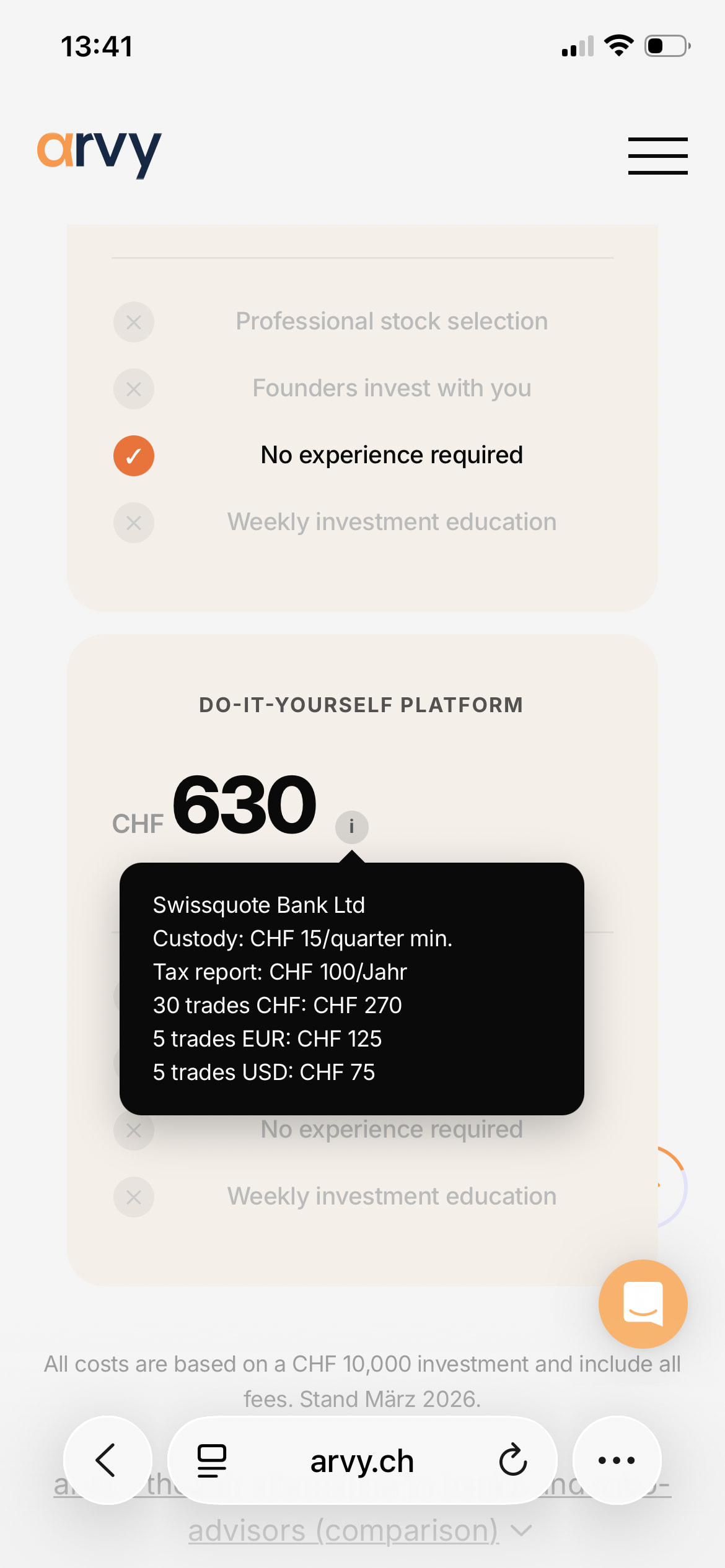 Based in Switzerland, arvy is a modern asset manager that positions itself between traditional high-cost banks and low-cost robo-advisors. It focuses on a “Quality Investing” philosophy, where the founders “co-invest” alongside clients.