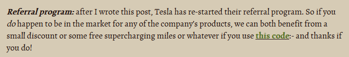 Which is why I wouldn’t take car advice from him but he’s as legitimate a source as any to stick a “mustachian” label on anything. We could create an “orthodox mustachianism” movement and declare Teslas are Mr./Ms. Fancypants items that deserve a slap in the face no matter how many millions you have in your investment stach and should be merrily scraped for parts on the village square by self-reliant-I-repair-my-own-stuff people until there are no more of them.