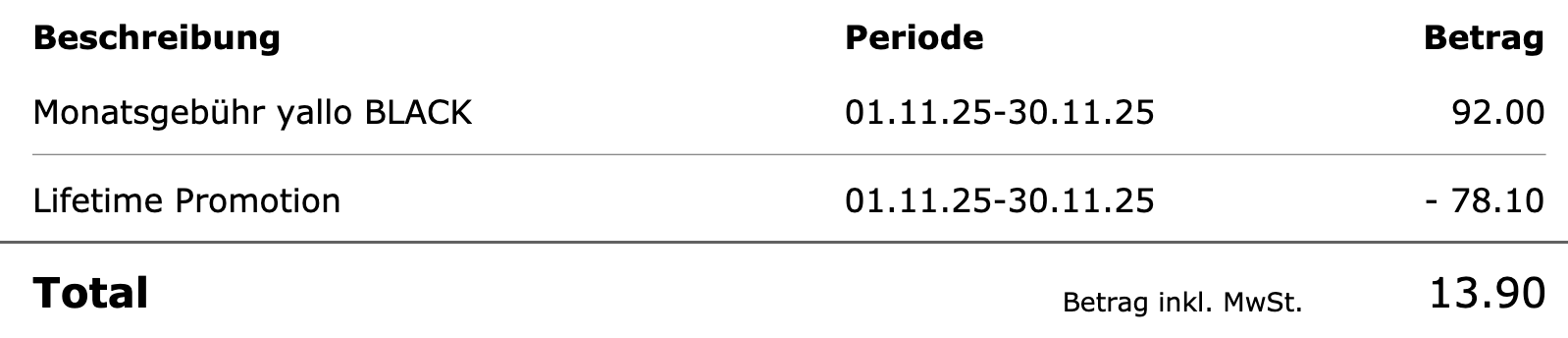 I then sent Digital Repubik an email and they simply replied, “No problem, your new subscription has been canceled at no cost.” The fact that both use the Sunrise network may have helped, but a few days later everything was back to normal in the Yallo customer center as if nothing had ever happened, but the discount remained in place as promised.