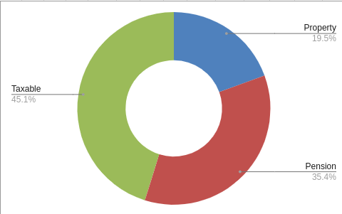 in my current taxable portfolio, i’m about 70% stocks. The remaining 30% is 9% bonds and the rest: gold, gold stocks, uranium (sprott and yellowcake plc) and CAOS. the bonds will be sold over the next few years and moved into the pension fund (voluntary purchase).
